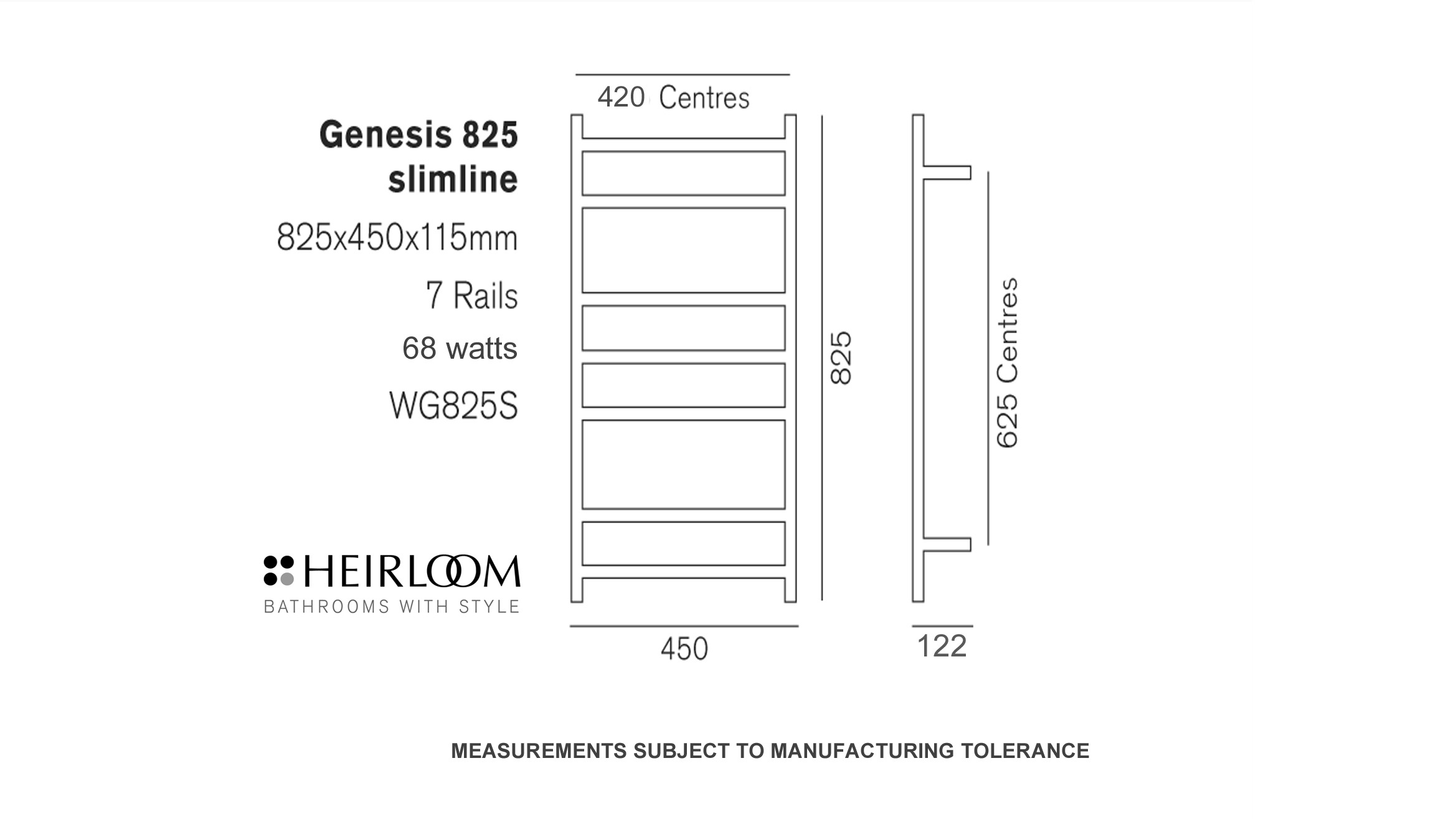 GENESIS NERO 825 SLIMLINE TOWEL WARMER