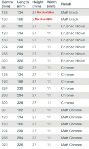 128MM BLK, 128MM BN, 128MM SC, 128MM WH, 160MM BLK, 160MM BN, 160MM SC, 192MM BLK, 192MM BN, 192MM SC, 192MM WHITE, 256MM BLK, 256MM BN, 256MM SC, 256MM WH, 320MM BLK, 320MM BN, 320MM SC, 320MM WHITE