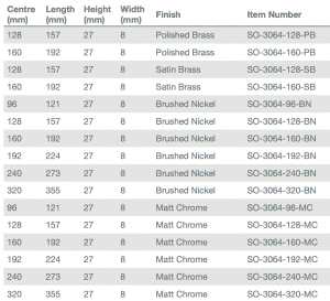 Mardeco Cabinet Handle 3064 BN, SC & BLK